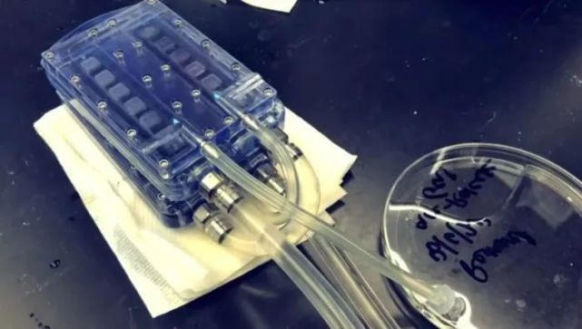 以前的测试已经让这些部分中的每一个独立工作,但这是该团队第一次测试它们在一个设备中串联工作。该生物人工肾连接到病人的两条主要动脉--一条将血液输送到体内过滤,另一条将过滤后的血液输送回体内--以及连接到膀胱,废物在那里以尿液形式沉积。